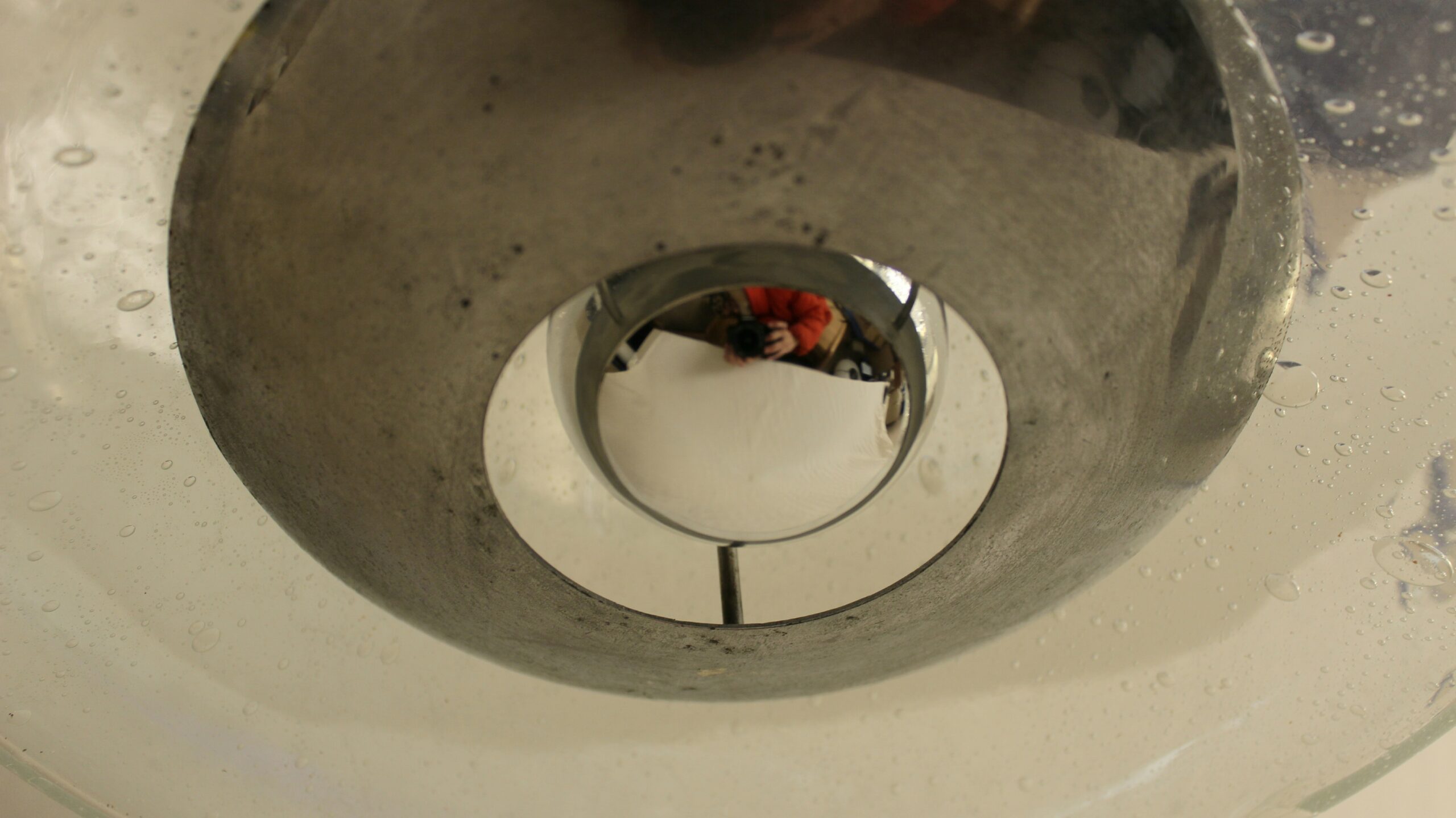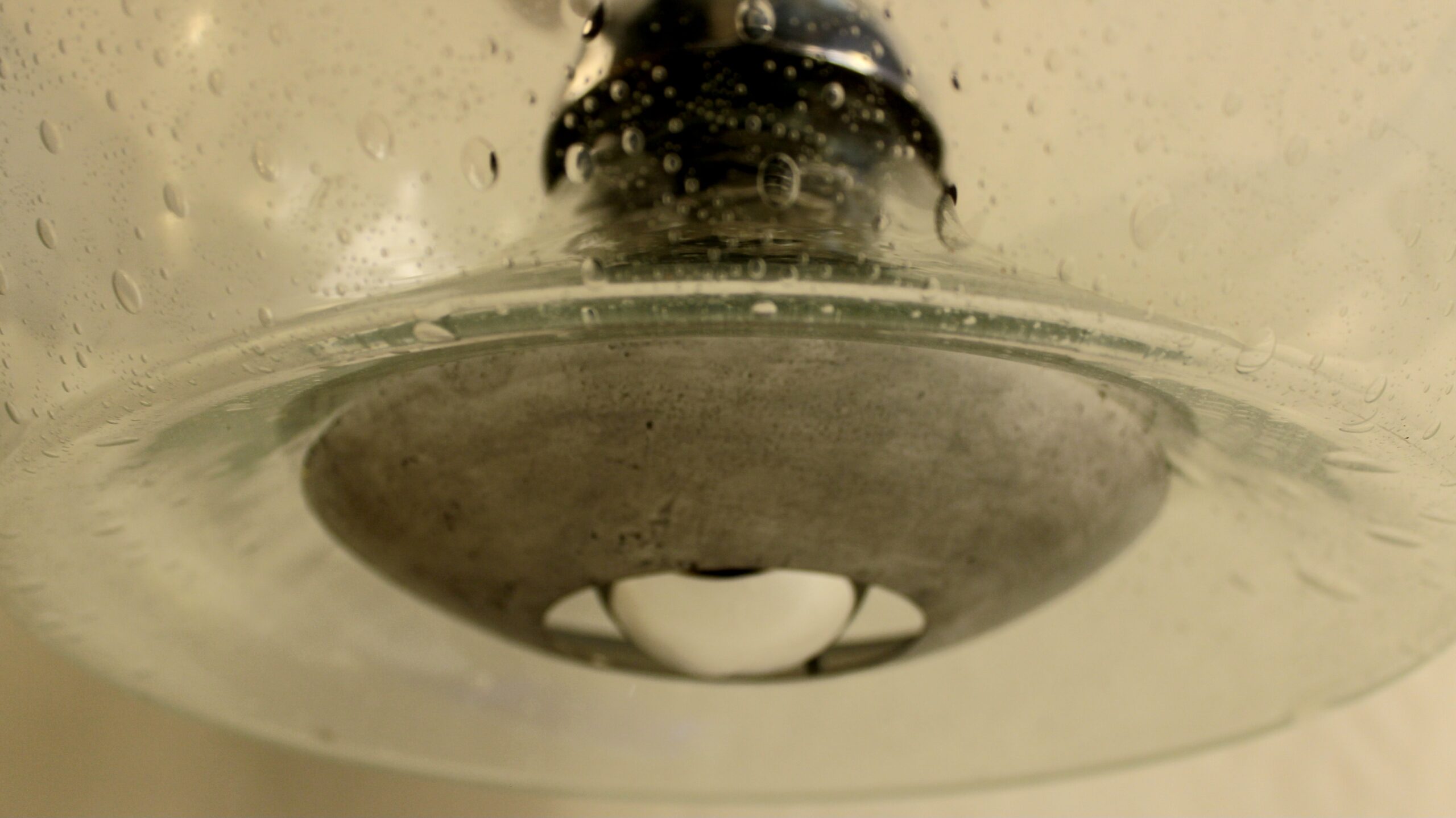 Bras télescopique et coupelle métallique chromé en abat-jour.