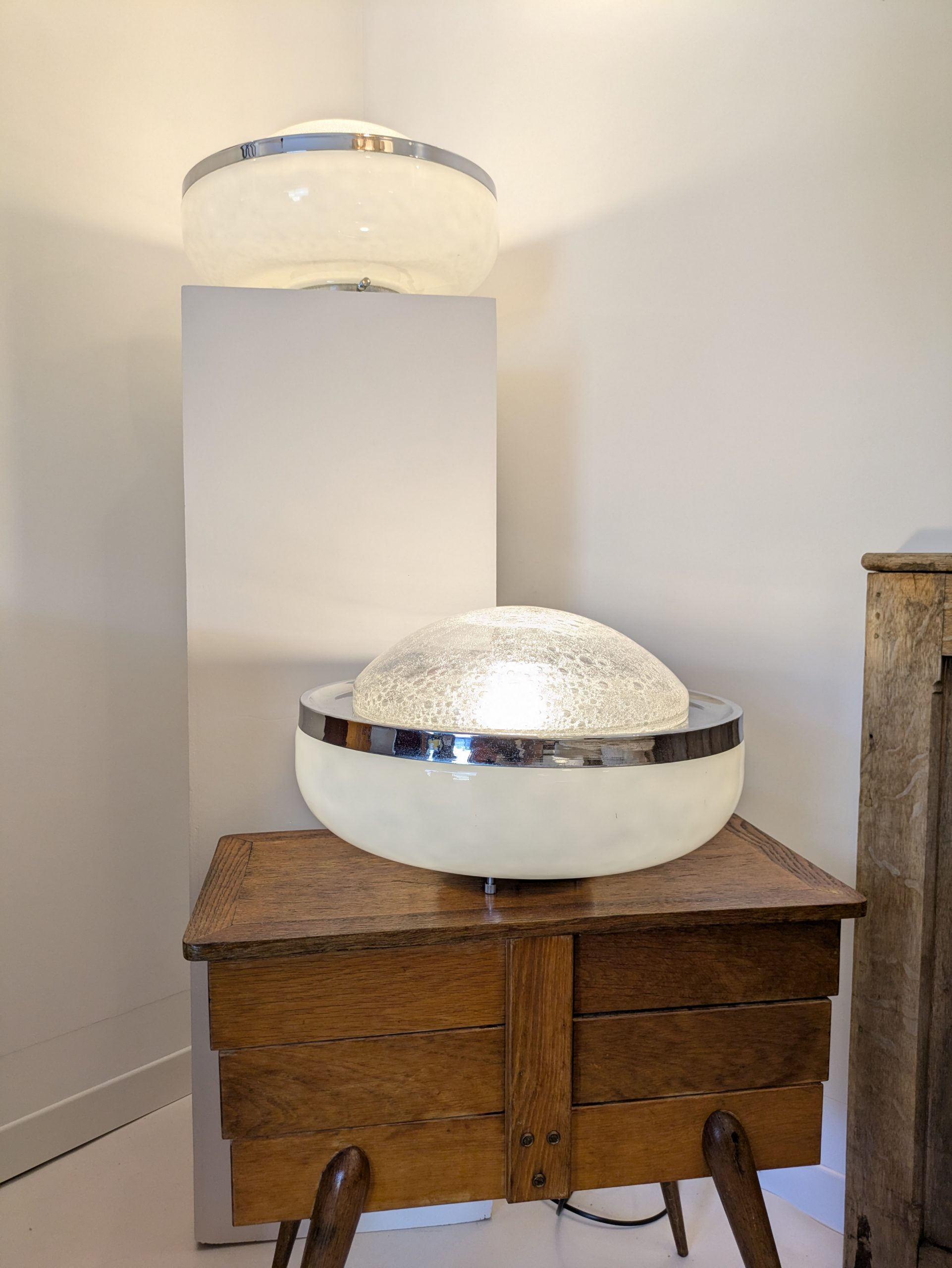 Pair of opaline and Pulegosso Murano glass table lamp, Italy, 1980