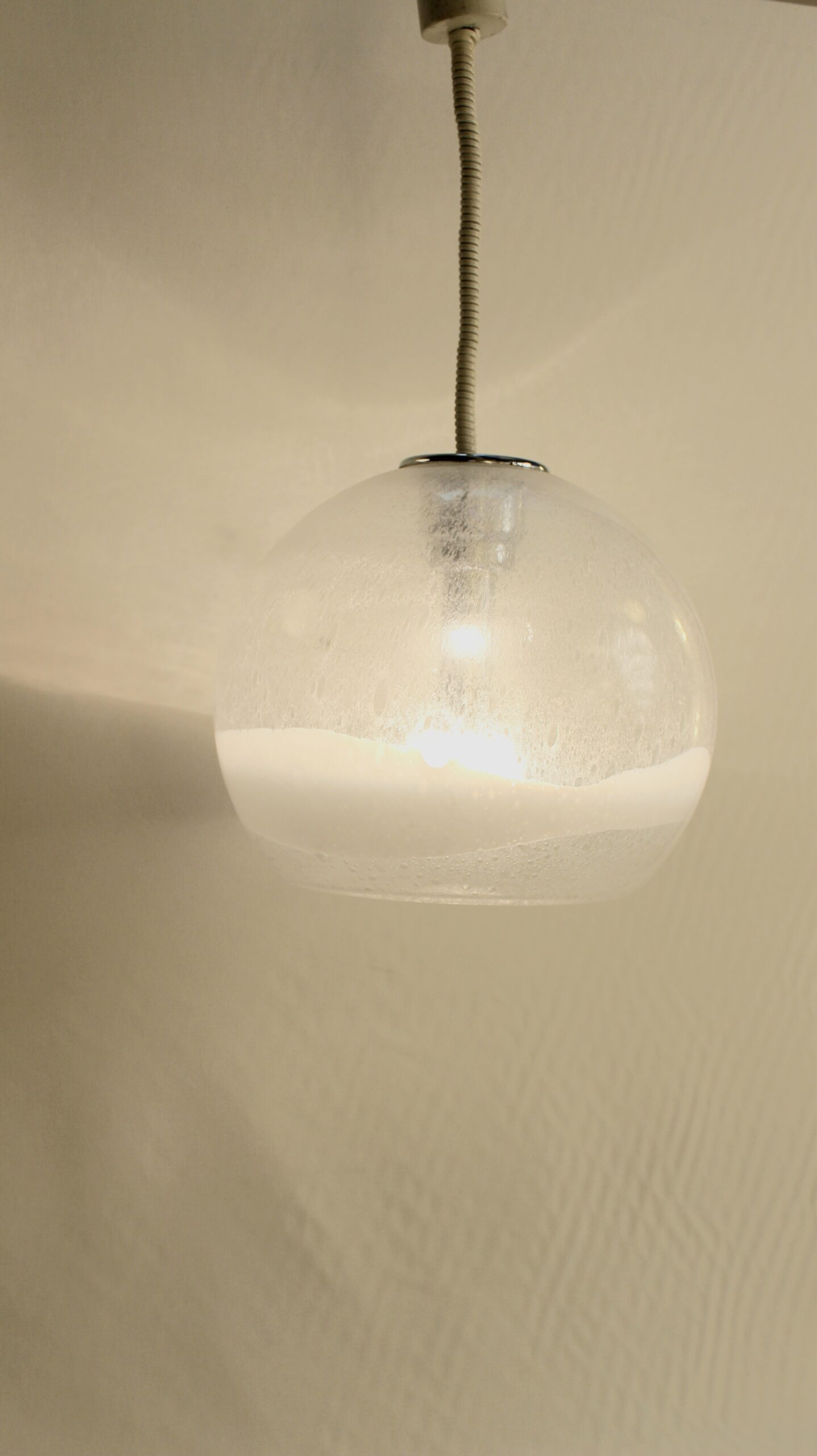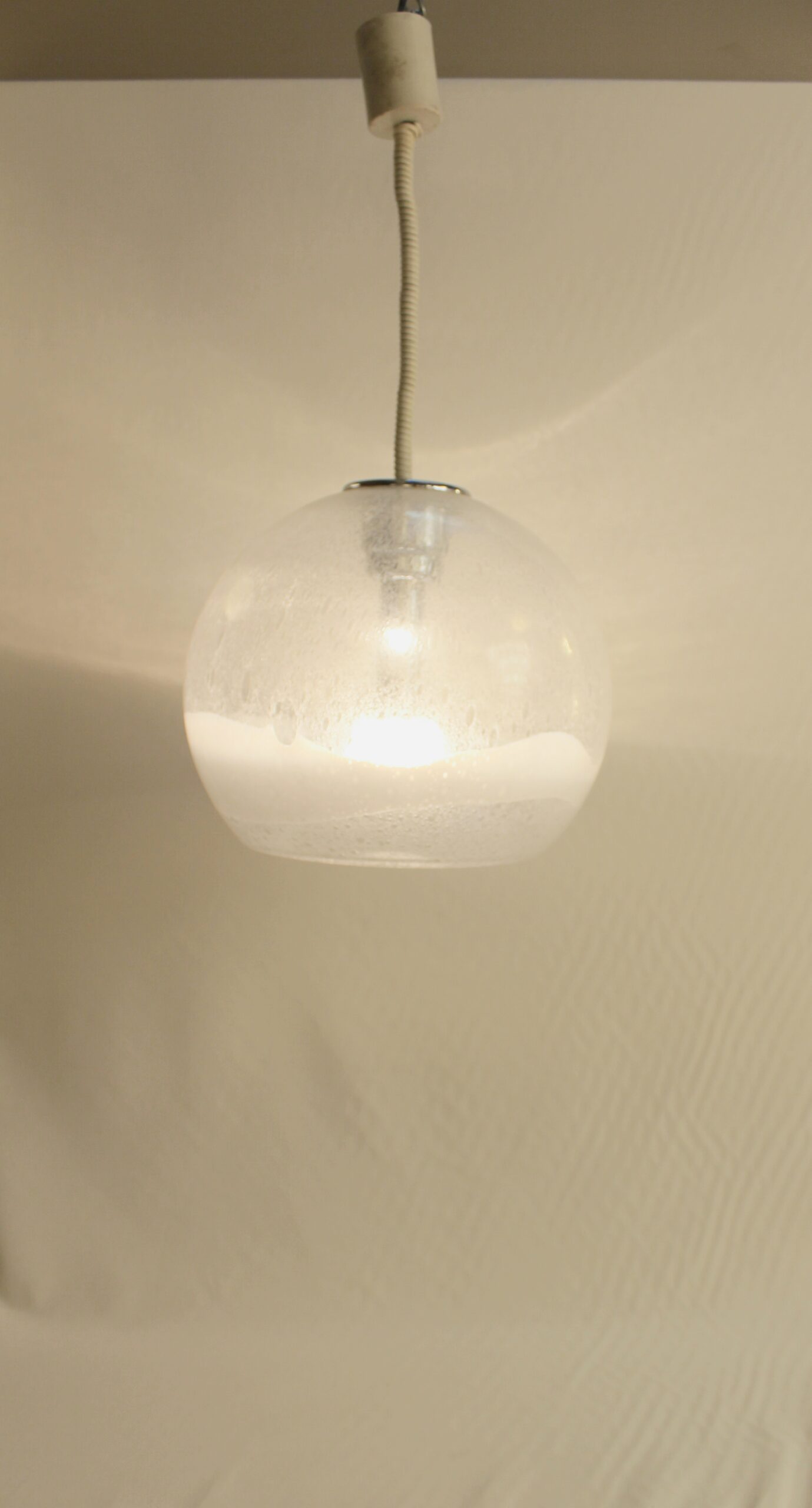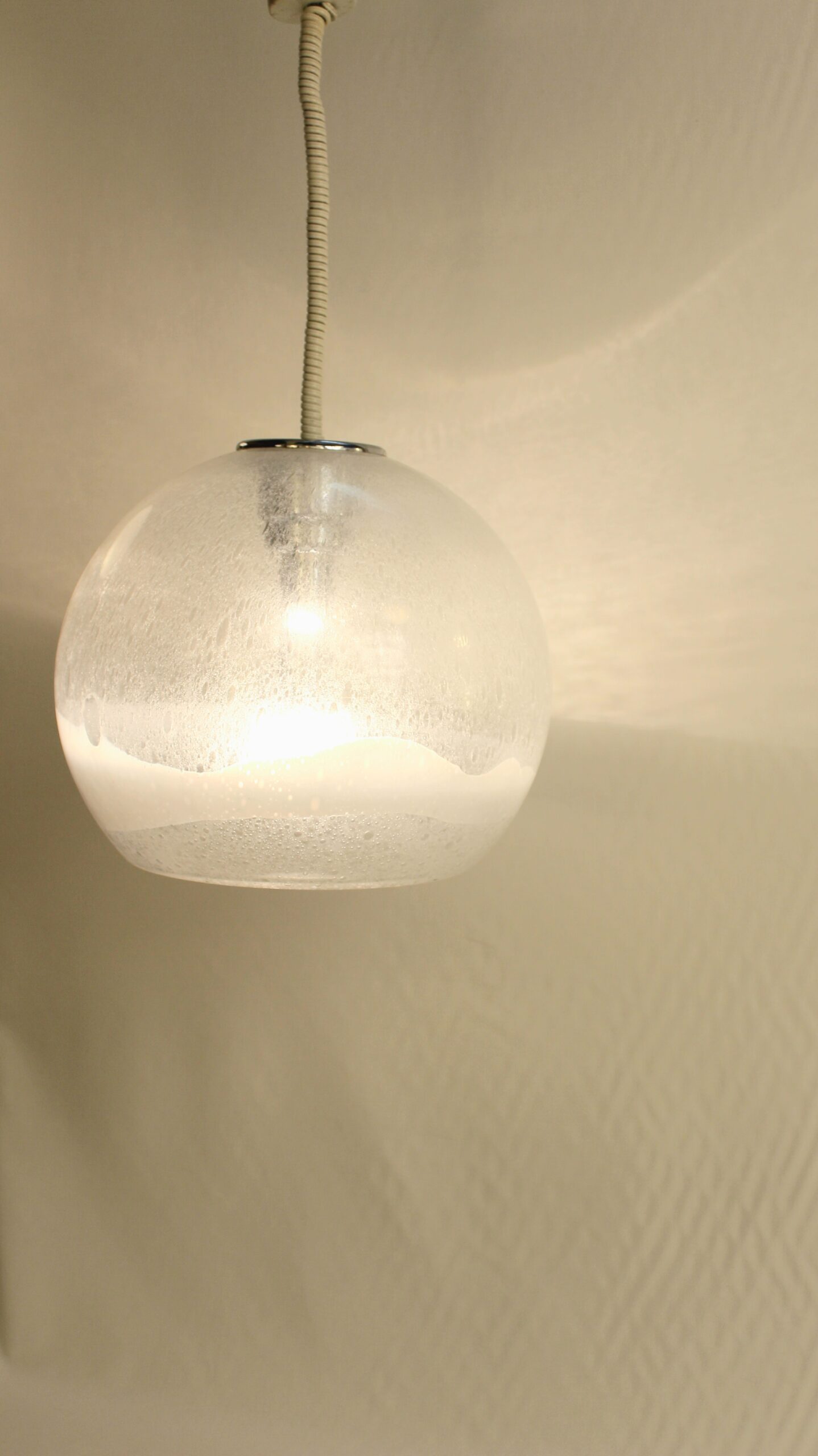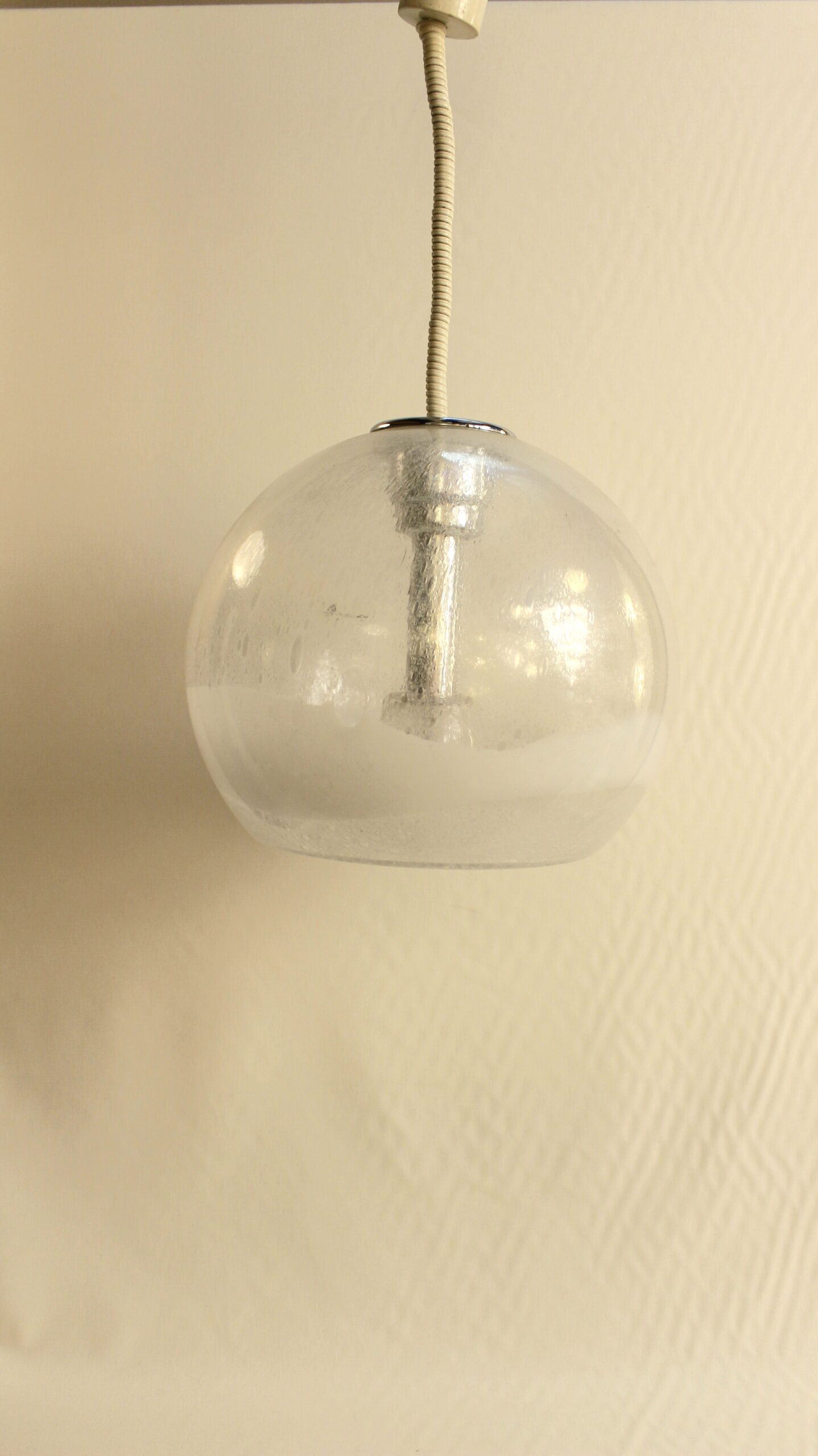 Taille moyenne de la série, cette suspension est en verre soufflé de Murano.
