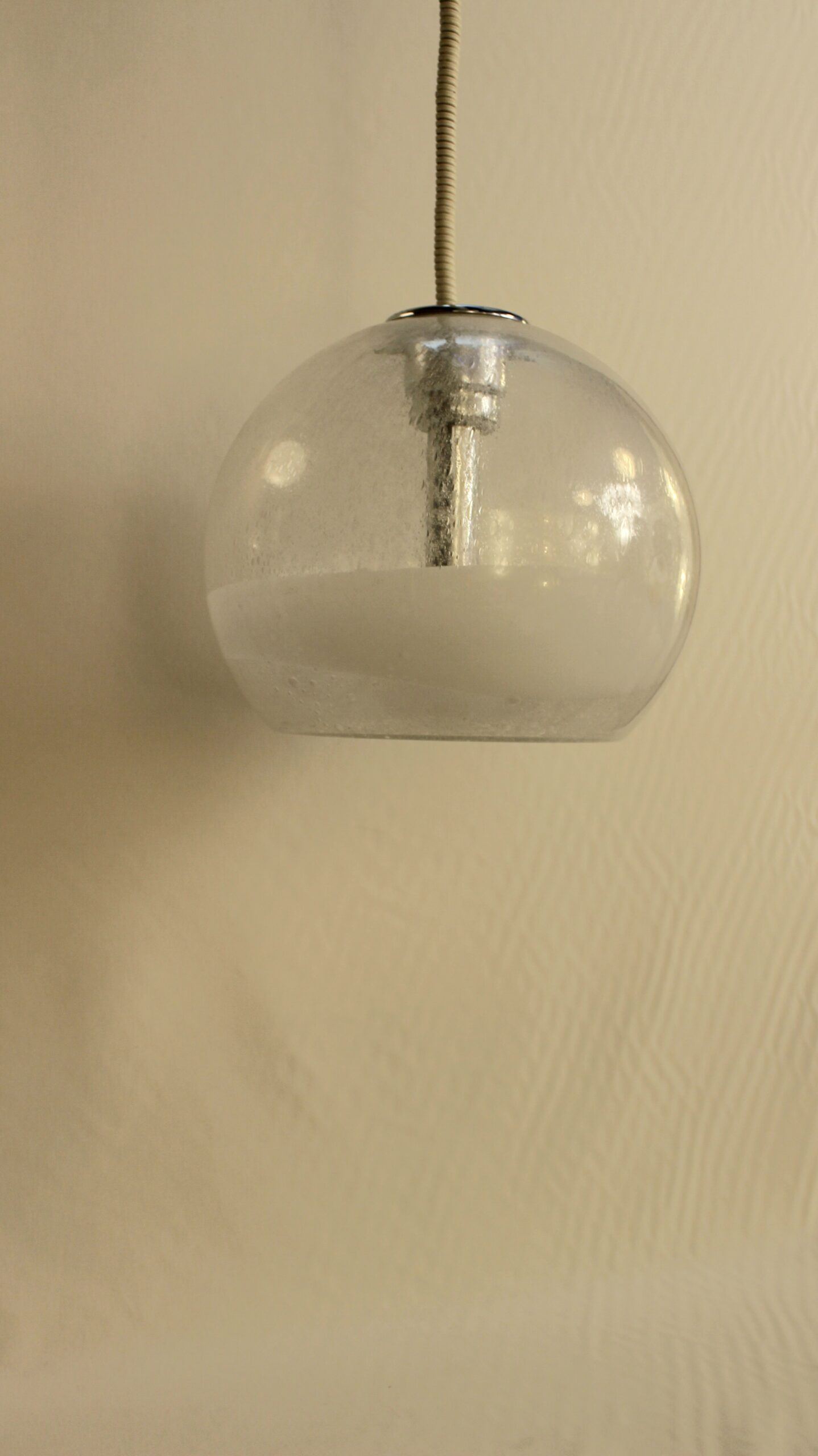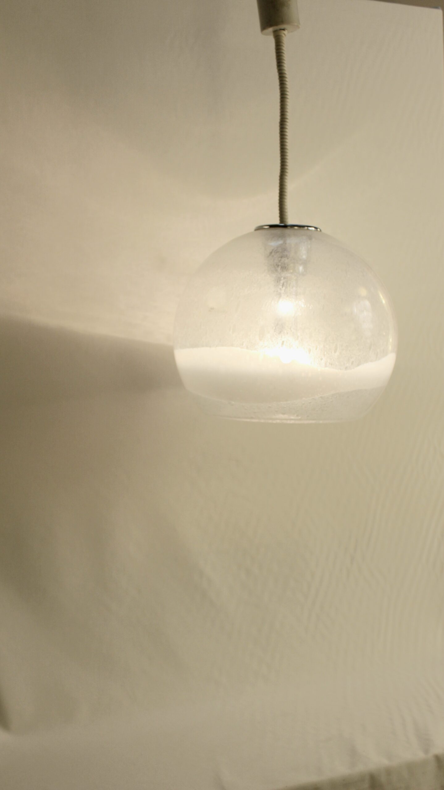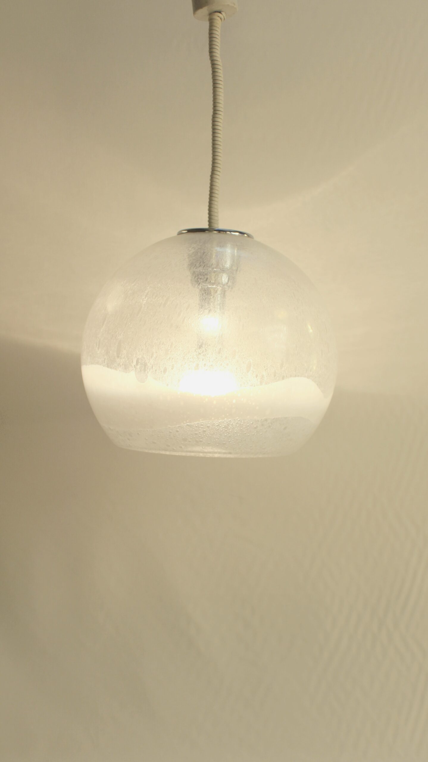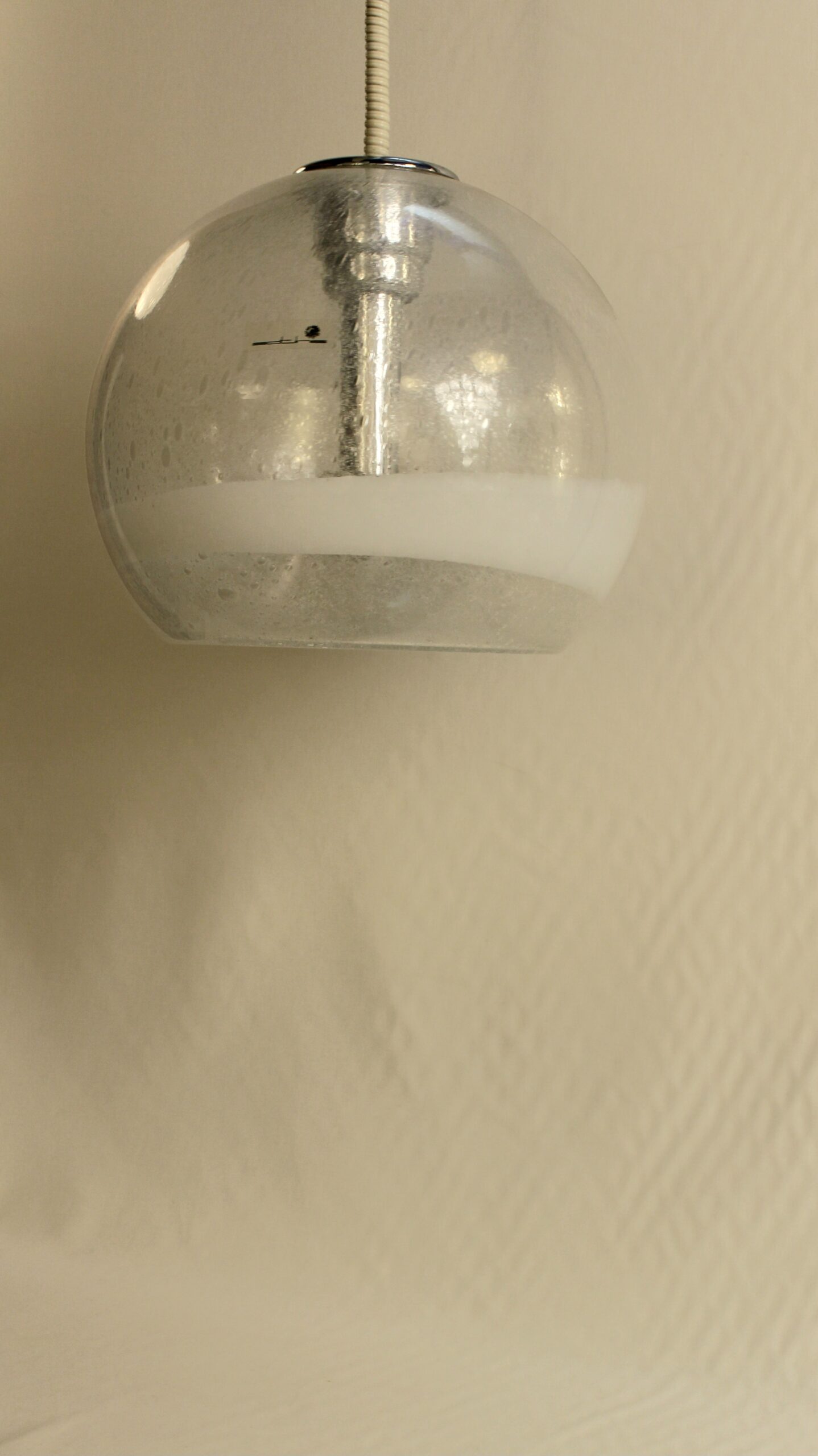 Taille moyenne de la série, cette suspension est en verre soufflé de Murano.