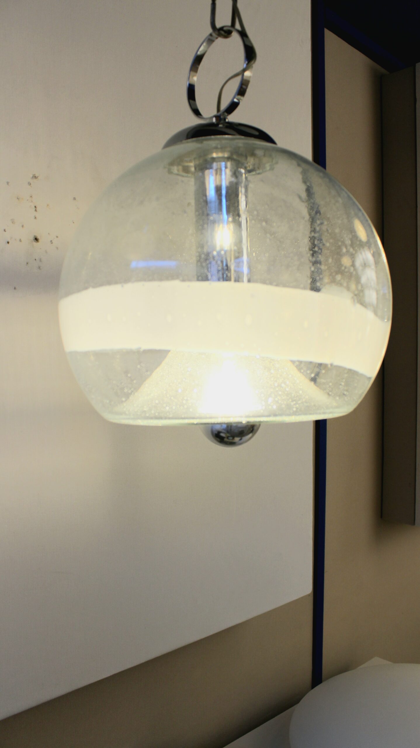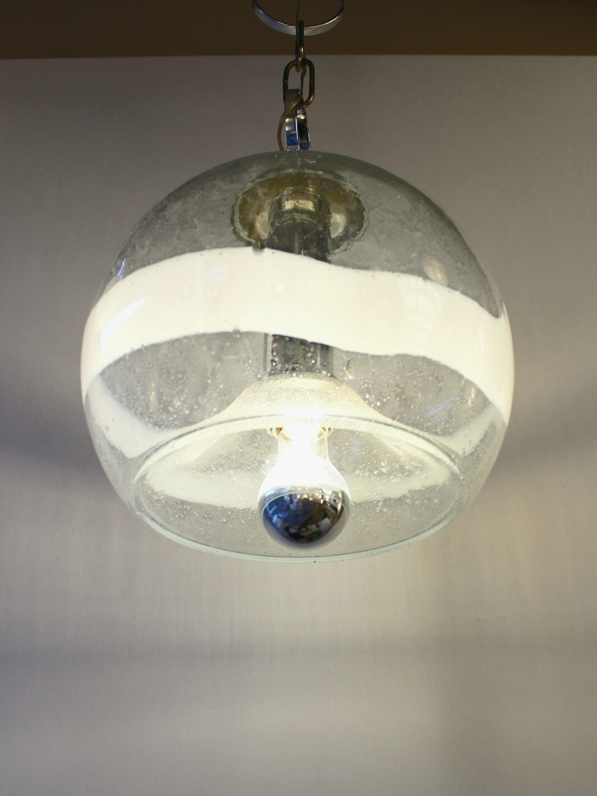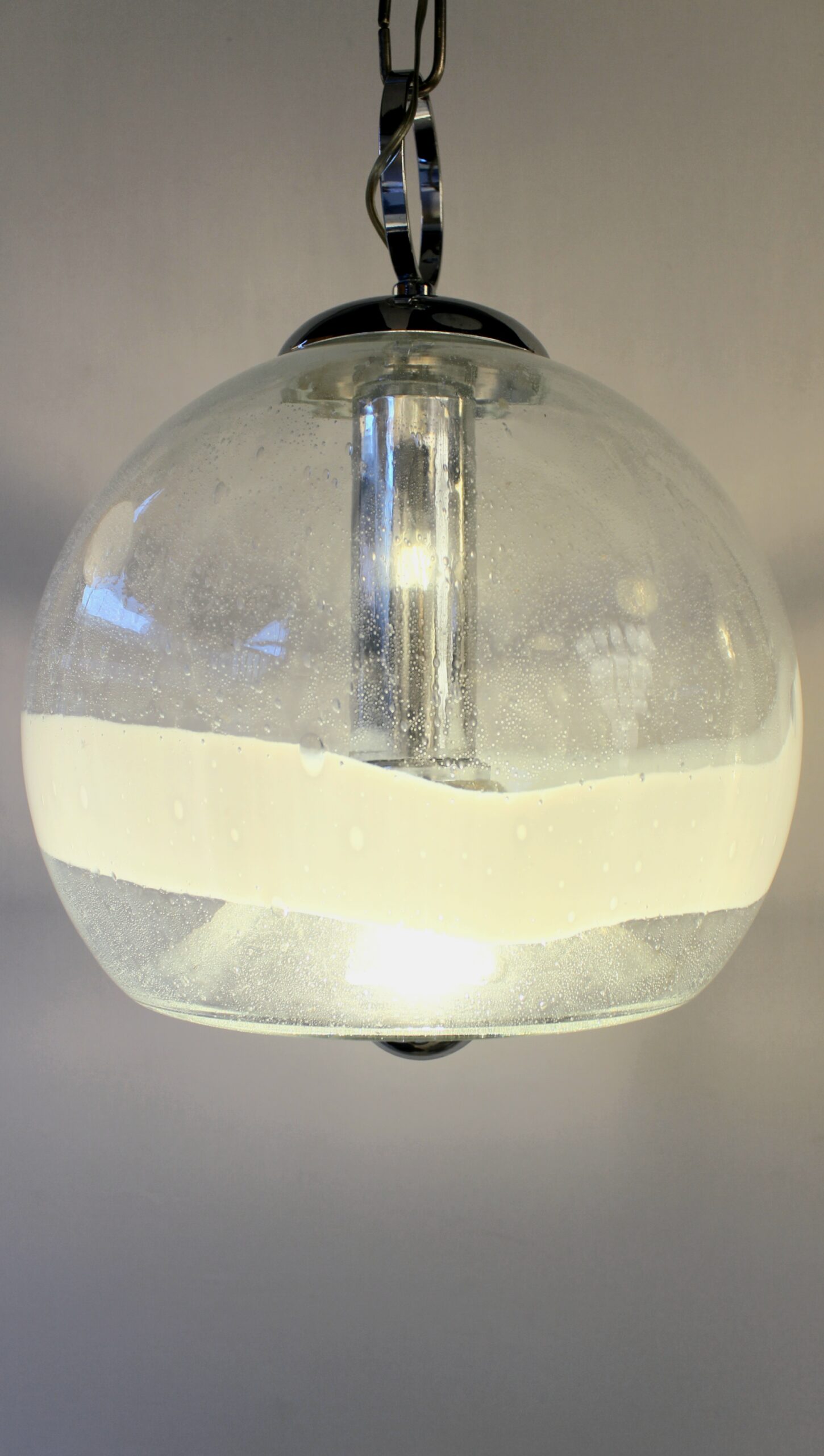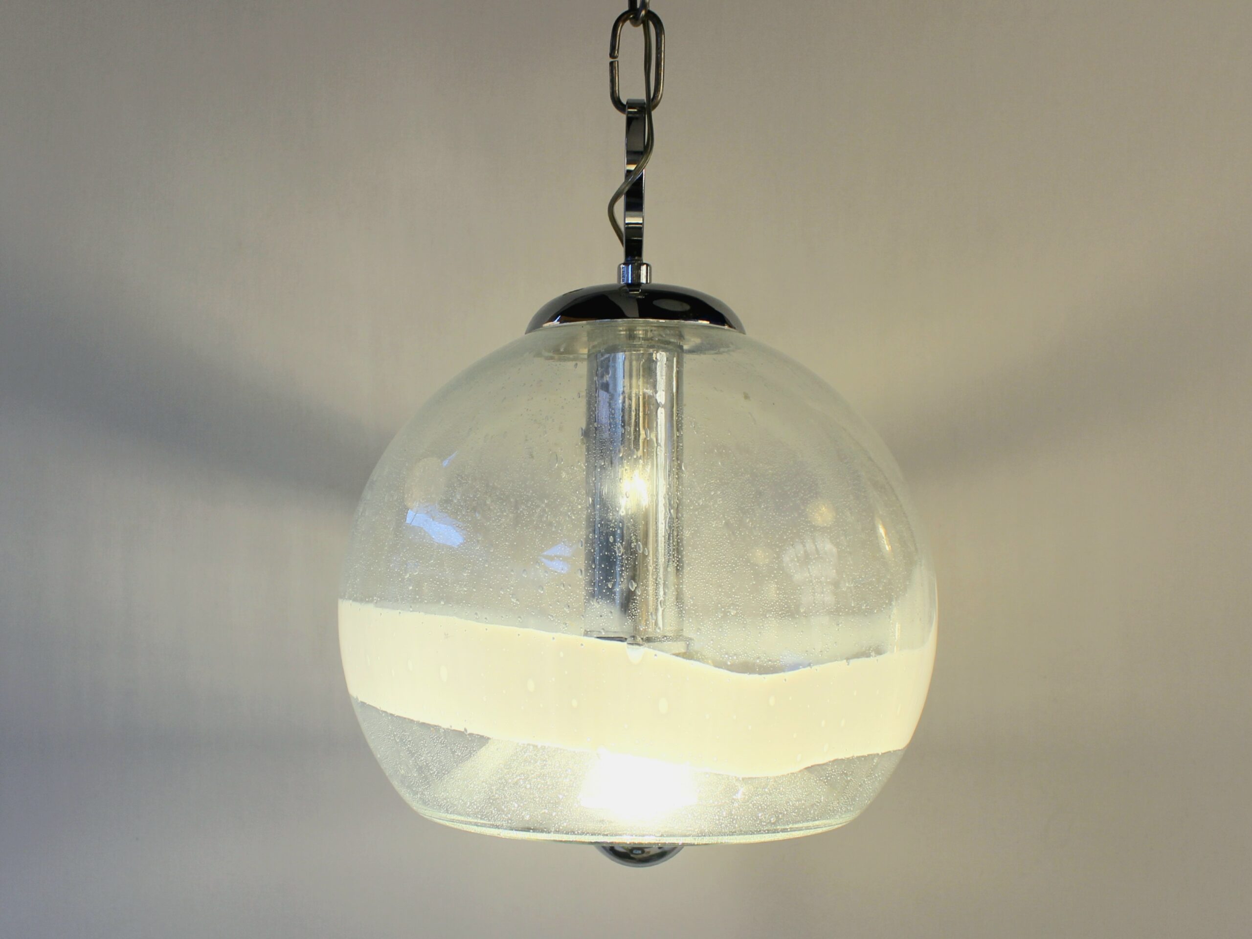 Suspension de la marque Sothis, dessiné par Ettore Fantasia et Gino Poli, circa 1970. Elle est en verre soufflé de Murano. Travail Italien.