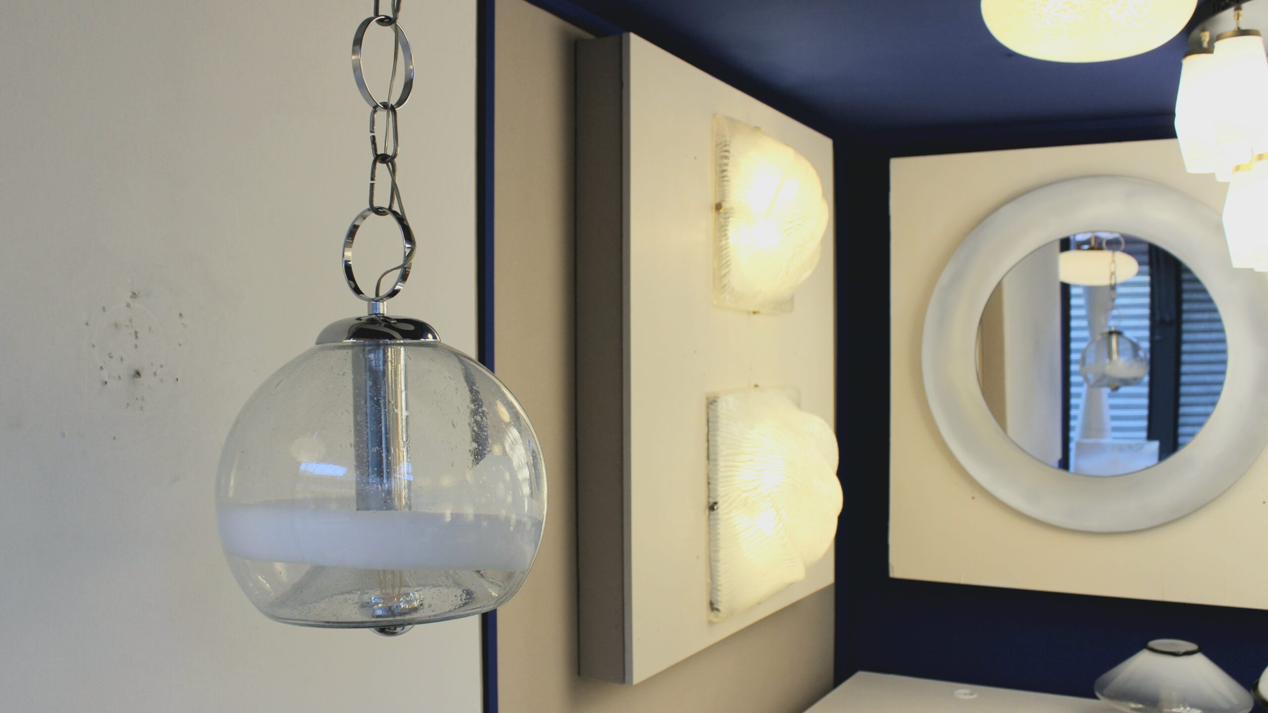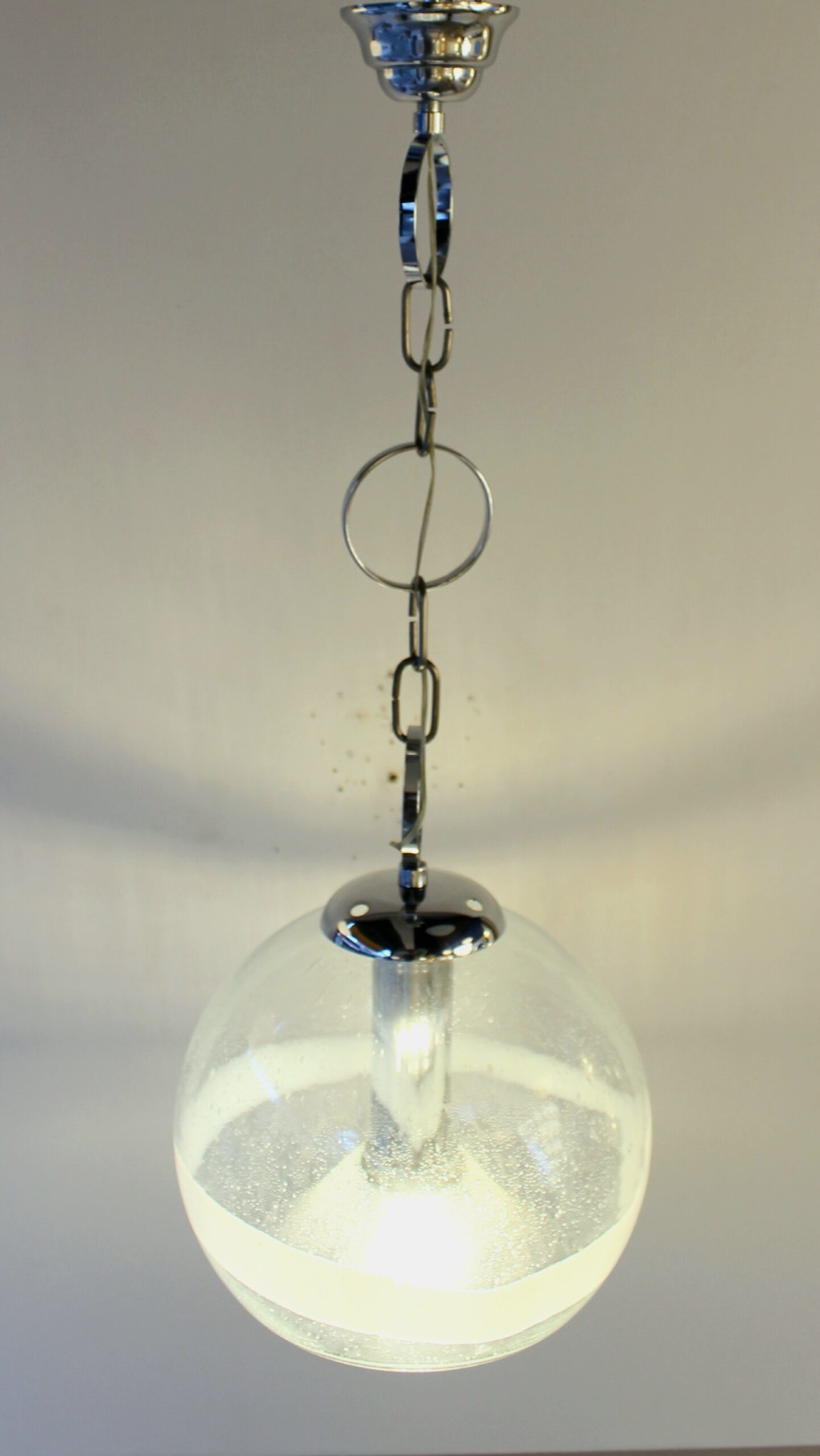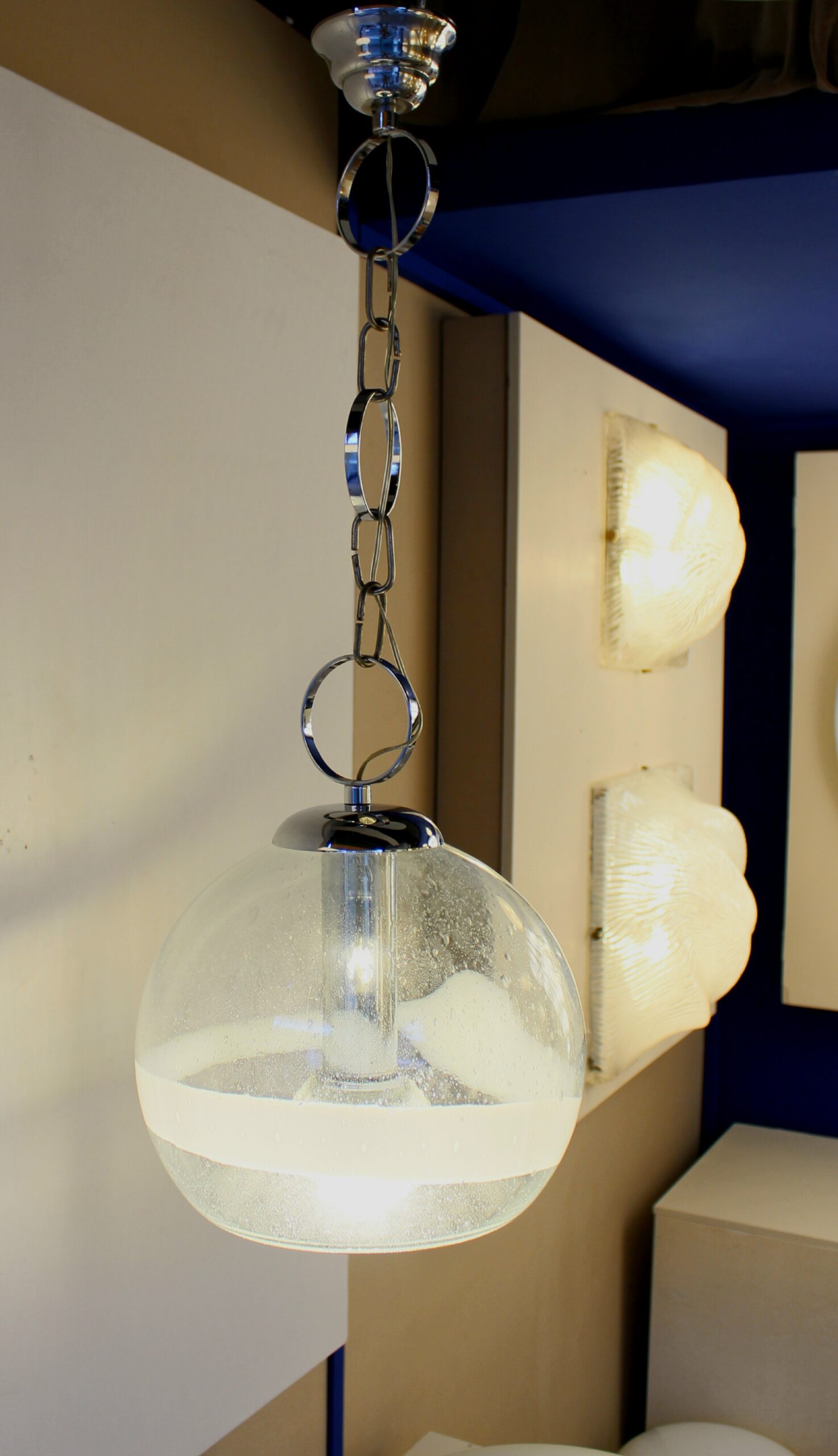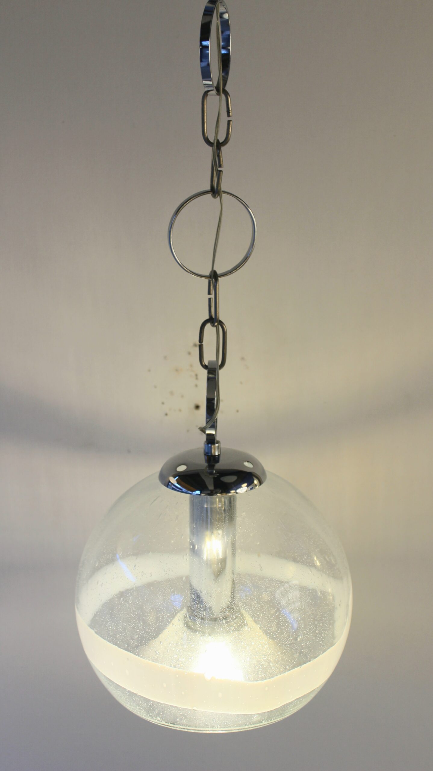 Suspension de la marque Sothis, dessiné par Ettore Fantasia et Gino Poli, circa 1970. Elle est en verre soufflé de Murano. Travail Italien.
