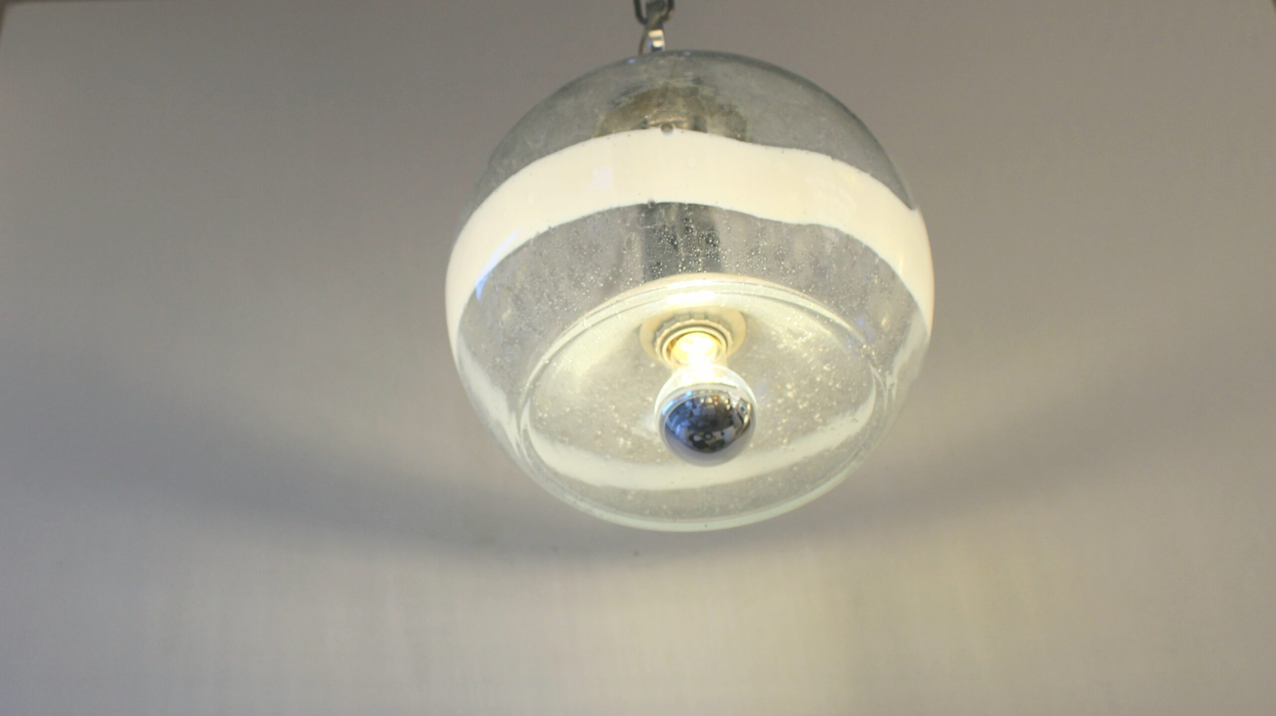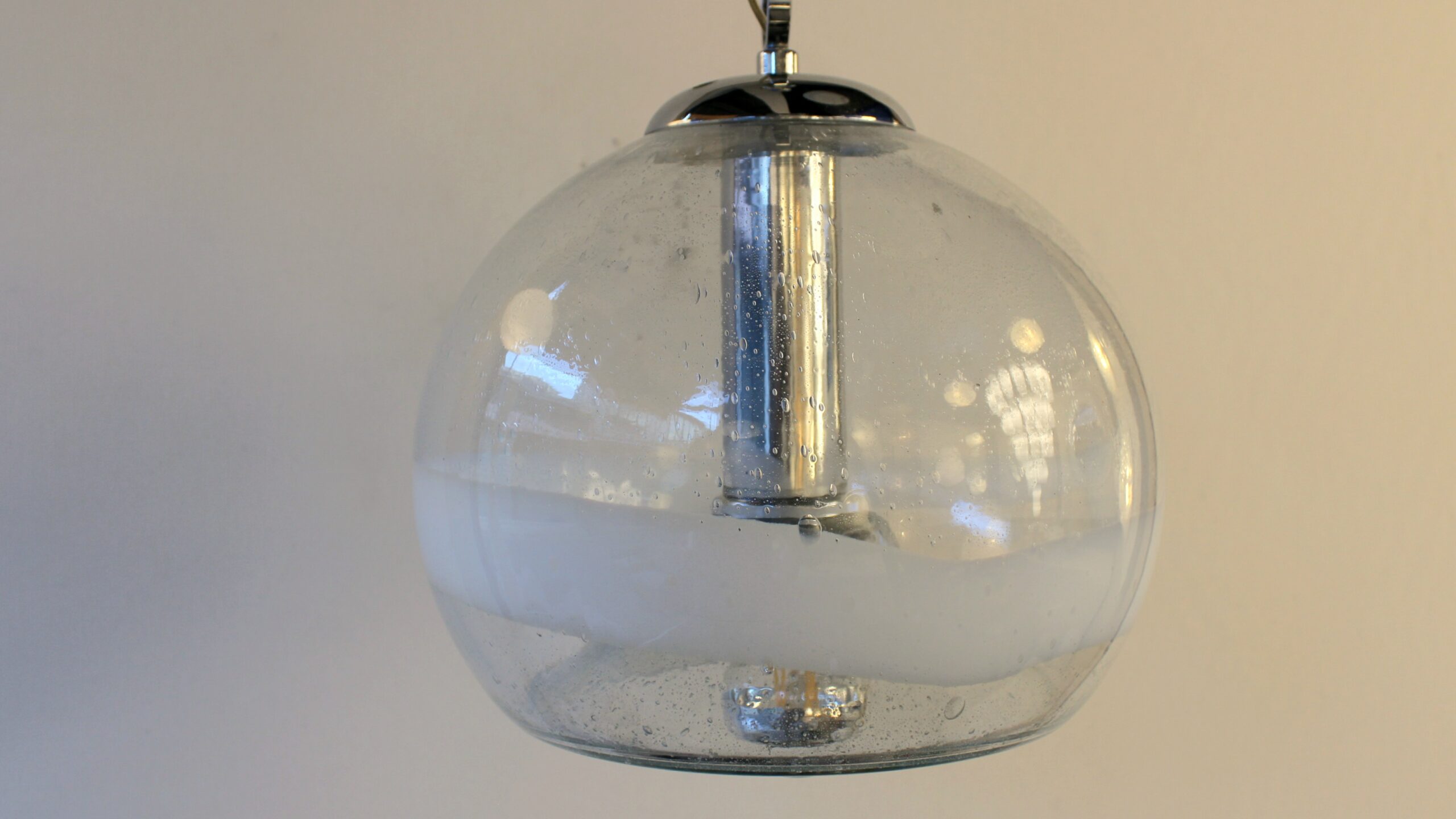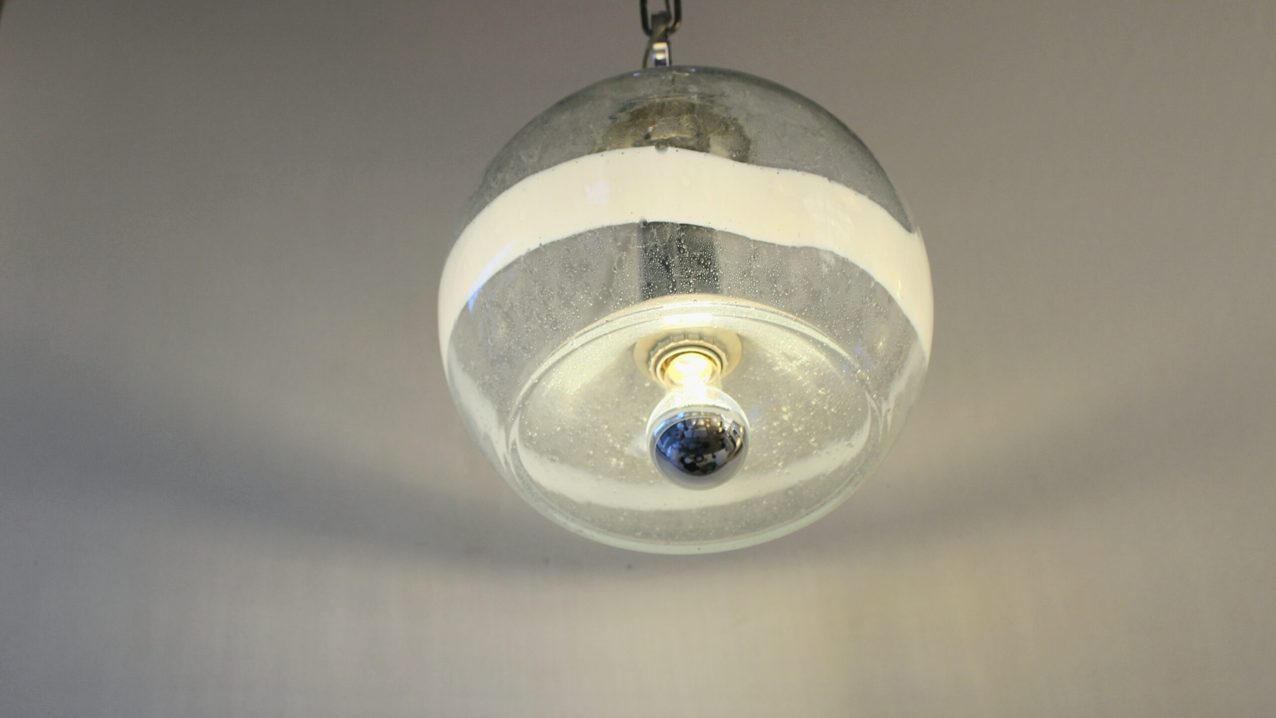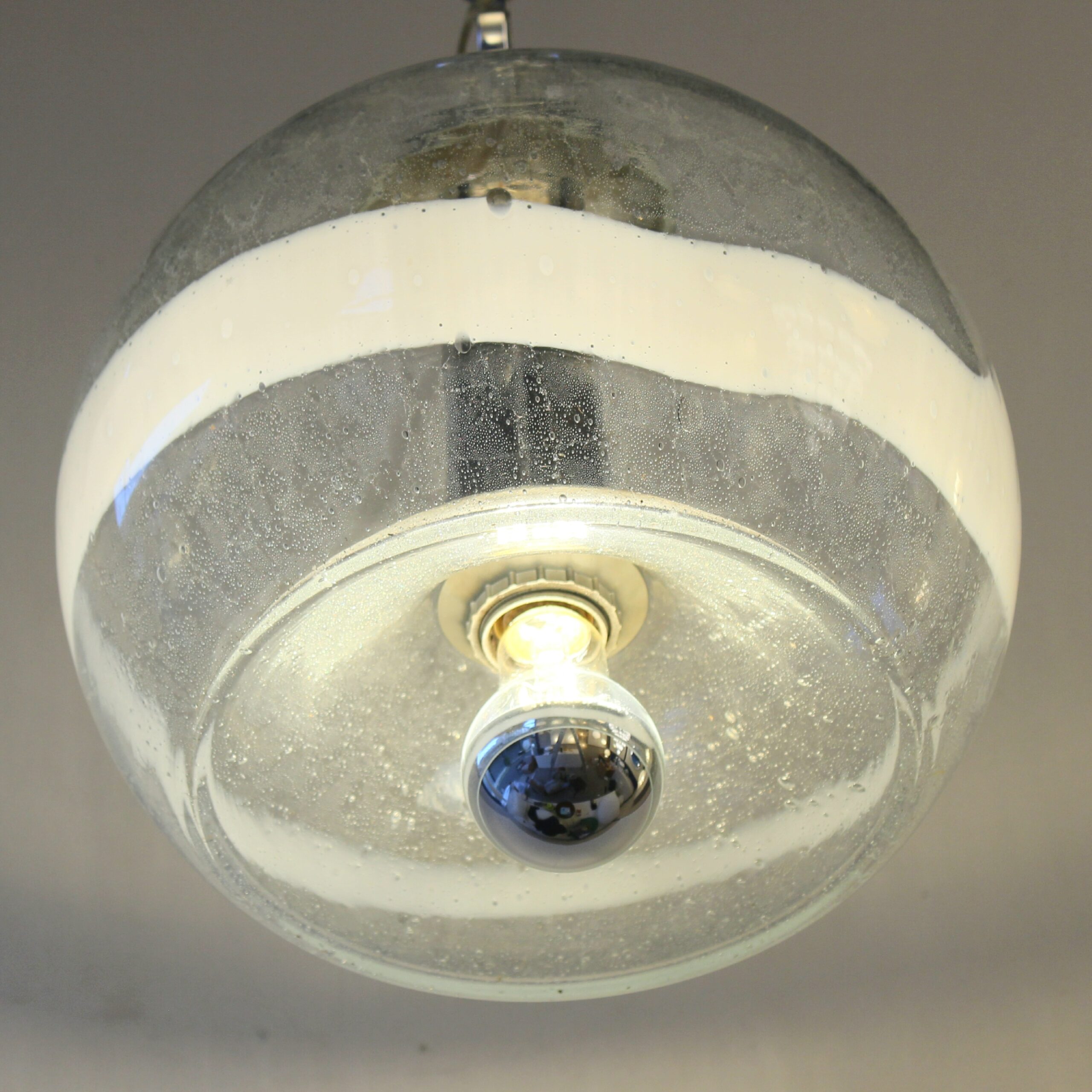 Est utilisé ici la technique appelé « Pulegoso », mélange de verre en fusion et de bicarbonate de soude. Ce dernier se décompose avec la chaleur créant des bulles d’air dans la matière.